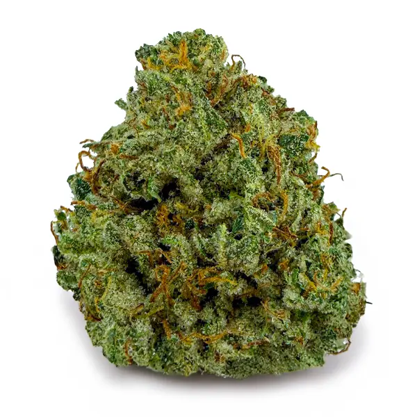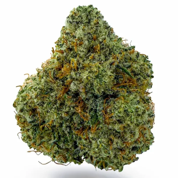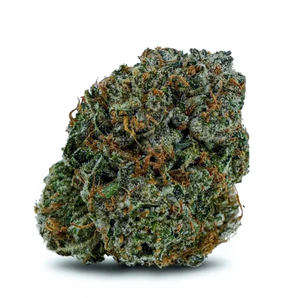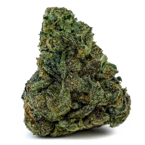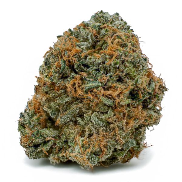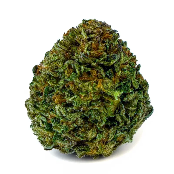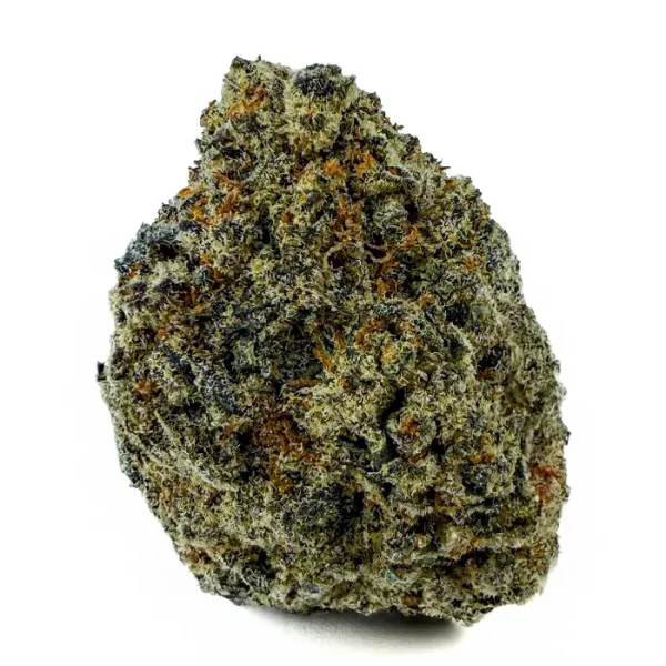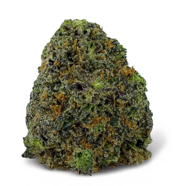 Flavor-wise, it hits with sweet cherry citrus on the inhale and a rich, earthy kush finish on the exhale—pungent, spicy, and unforgettable. The nugs are fat and fluffy with a deep forest green color, fiery orange hairs, and a galaxy of amber crystal trichomes dusted over every surface.