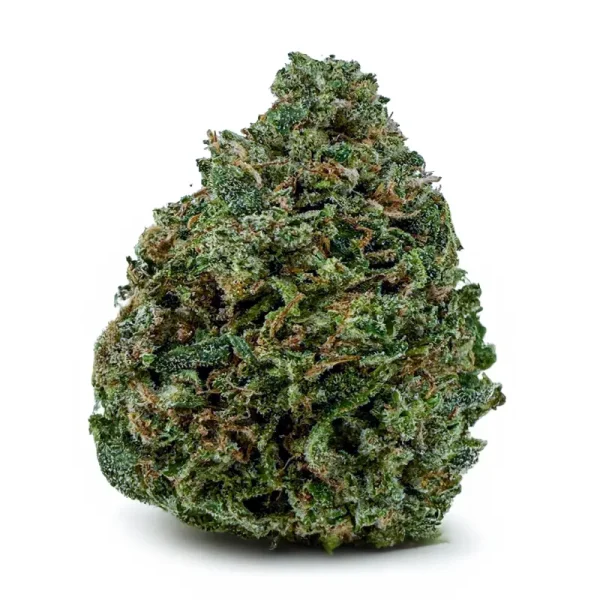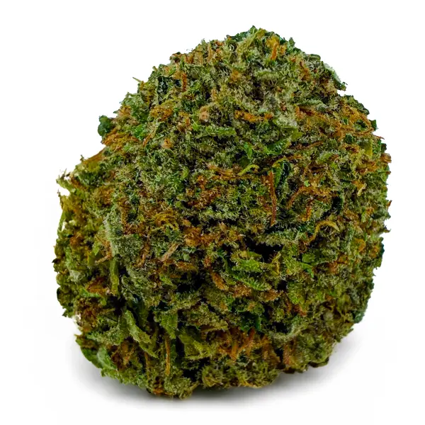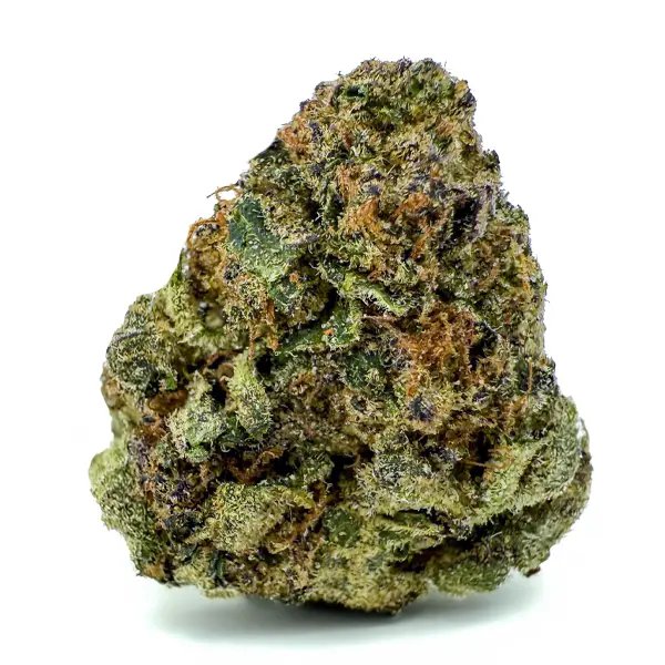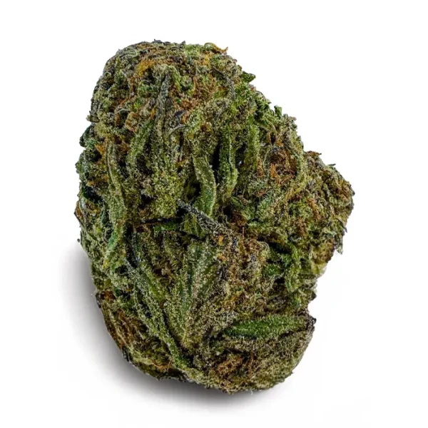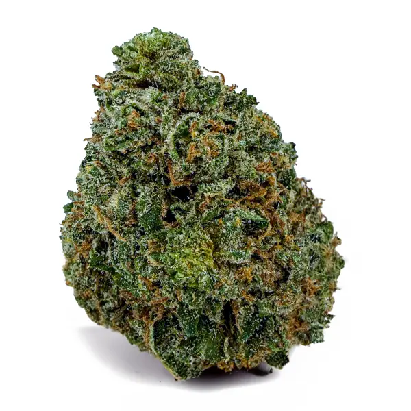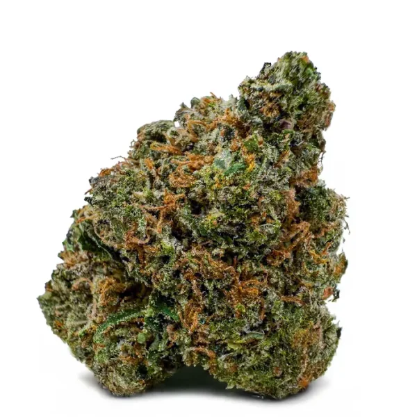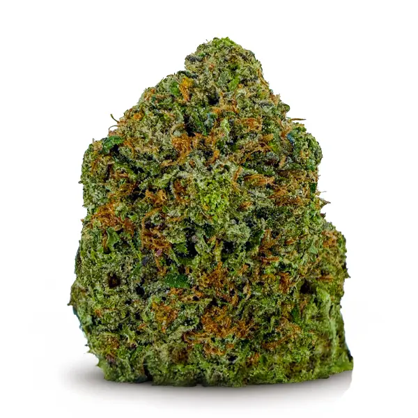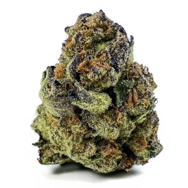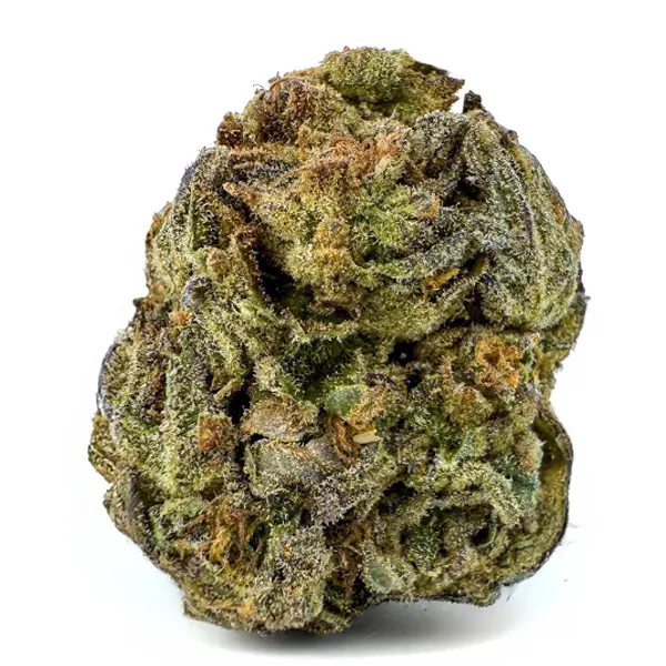 Flavor-wise, it hits with sweet cherry citrus on the inhale and a rich, earthy kush finish on the exhale—pungent, spicy, and unforgettable. The nugs are fat and fluffy with a deep forest green color, fiery orange hairs, and a galaxy of amber crystal trichomes dusted over every surface.