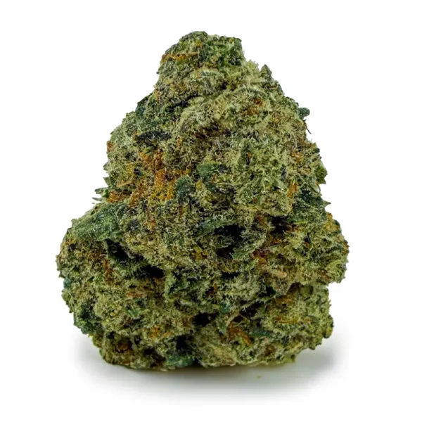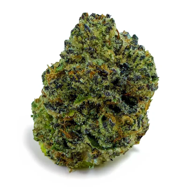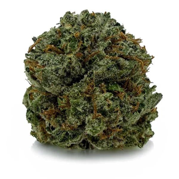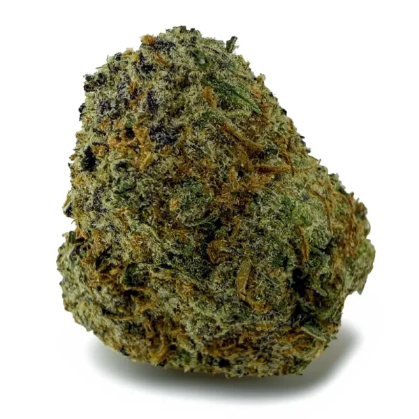 Flavor-wise, it hits with sweet cherry citrus on the inhale and a rich, earthy kush finish on the exhale—pungent, spicy, and unforgettable. The nugs are fat and fluffy with a deep forest green color, fiery orange hairs, and a galaxy of amber crystal trichomes dusted over every surface.